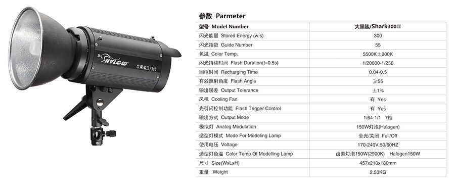 - 产品技术参数: Black Shark II Studio flash light - Black shark 300II