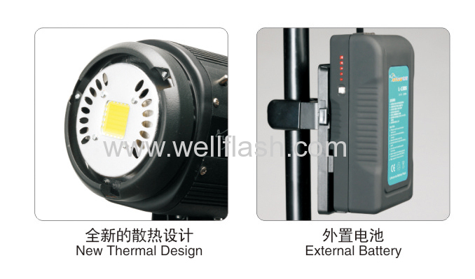 100W high power LED light source is solid light-emitting components, lighting luminous efficiency higher than traditional tungsten halogen 1000W/2000W quartz light and energy-saving 90%. Over 50000 hour's service life, it is green environmental protection light source in new generation.